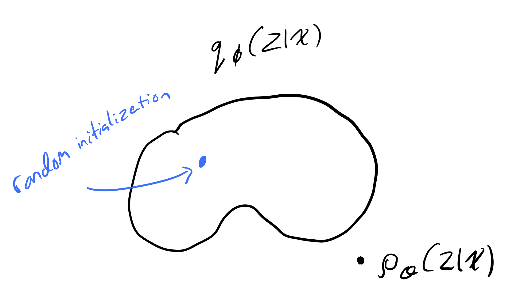 - Introduce a variational family, q_\phi(z | x) with parameters \phi.
