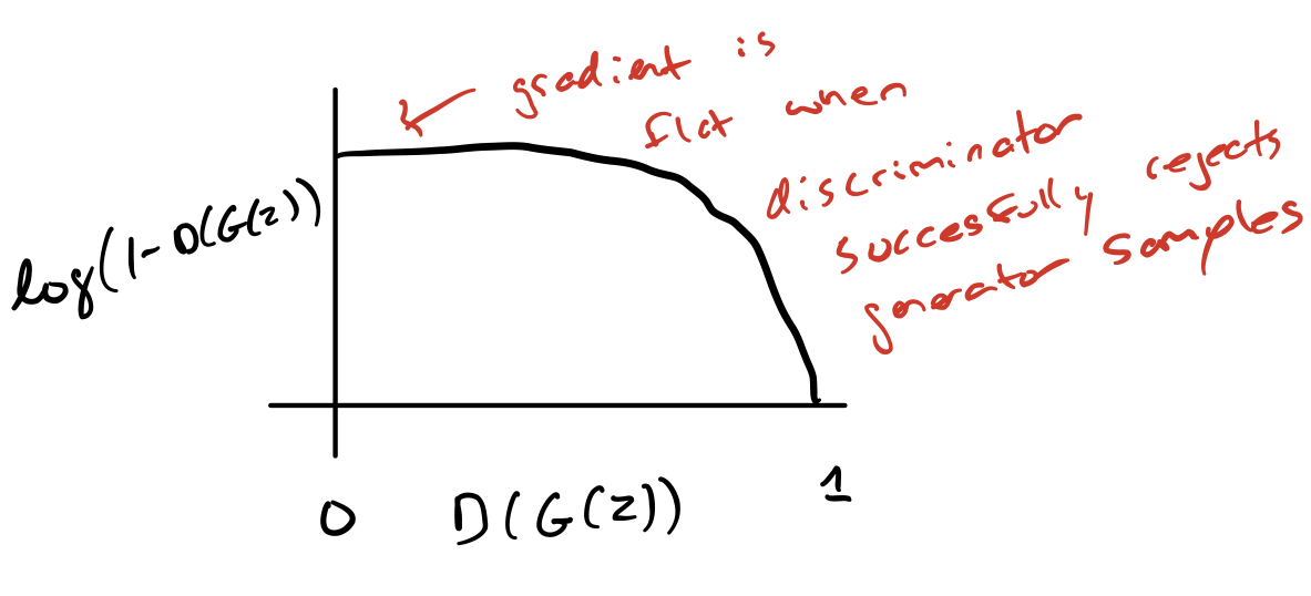 In the minimax game, the discriminator minimizes a cross-entropy, but the generator maximizes the same cross-entropy. This is unfortunate for the generator, because when the discriminator successfully rejects generator samples with high confidence, e.g. D(G(z)) = 0, the generator’s gradient vanishes (the cost function becomes flat!). This is known as the saturation problem.